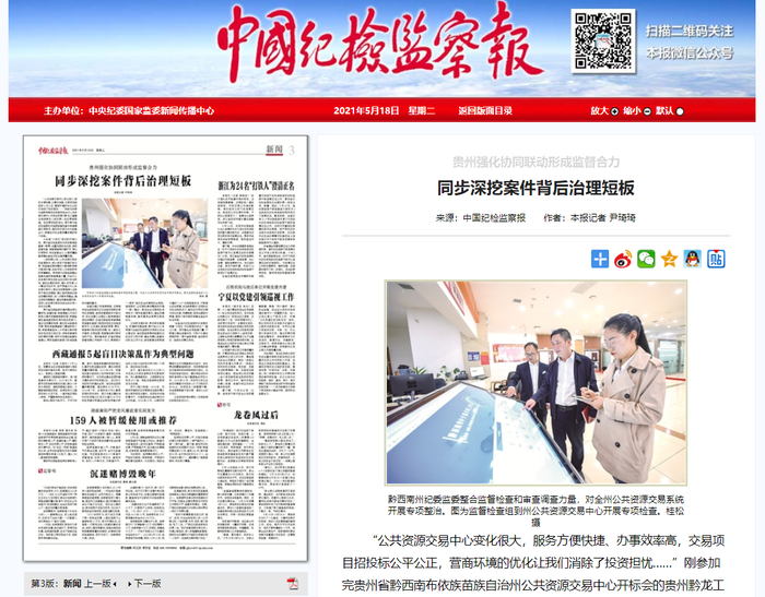 《中国纪检监察报》新闻版头条:贵州强化协同联动形成监督合力