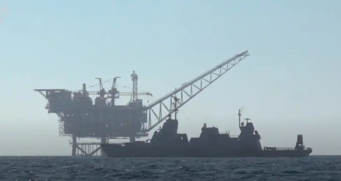 以色列护卫舰在油气平台附近执勤警戒