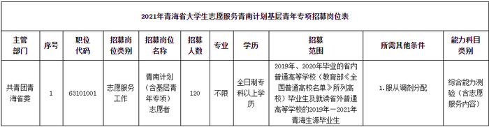 原标题:2021年青海省大学生志愿服务青南计划基层青年专项招募公告