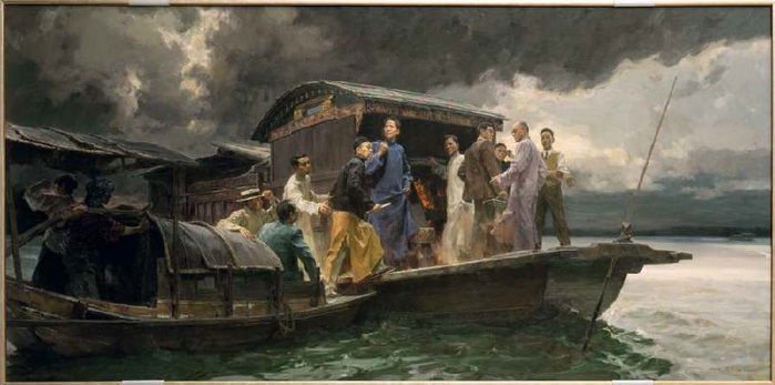 从上海转移至嘉兴南湖的红船,是一个于危难之中挽救了国家前途与命运的决定。这个决定,早已广为人知,但转移、登船的瞬间,却少有人亲眼目睹。这个在中国共产党历史上至关重要的时刻,是如何被凝固于画布之上,以刹那成就一个永恒?