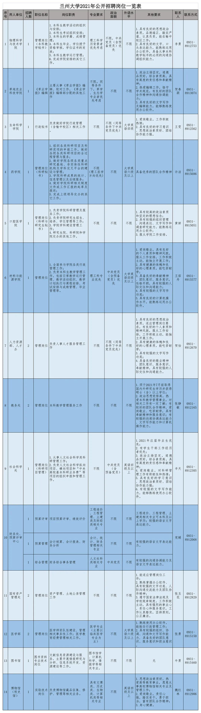 原标题:20个岗位等你来!兰州大学2021年招聘启事
