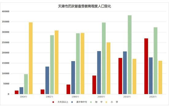 天津市历次普查受教育程度人口变化