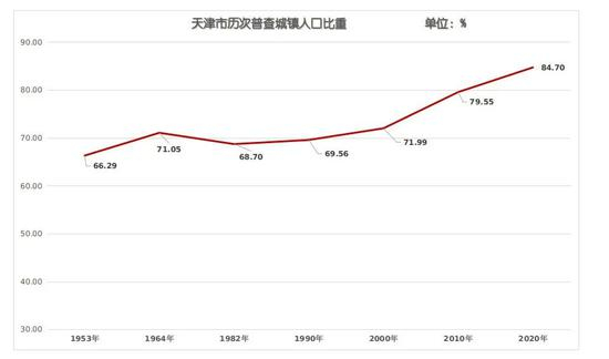 天津市历次普查城镇人口比重