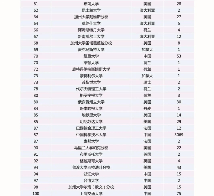 依据泰晤士高等教育2021年世界大学排名,中国科大近五届本科毕业生前往世界排名前100位一流大学继续深造人数占深造总人数的的比例为76.1%,具体人数如下: