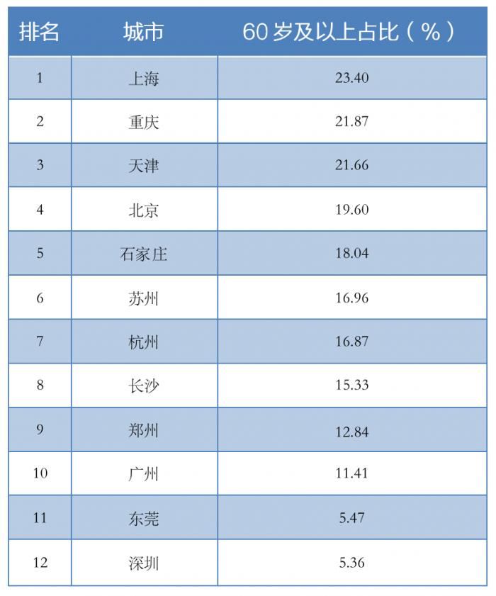 这些年北京、上海人口方面收的比较紧,新增人口放缓,这也会影响城市常住人口的老龄化数据。