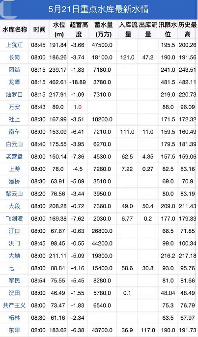 今日重点江河站、水库最新水文情况
