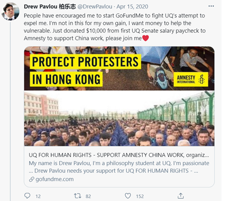 而且,澳大利亚恐怕还会有更多人去效仿海斯蒂等人的做法,通过反华营销而赚取金钱利益。这不,近两年通过不断支持“港独”“疆独”“疆独”等反华势力,并不断骚扰和碰瓷澳大利亚国内对华友好的声音,而逐渐在澳大利亚反华圈子里“崭露头角”的澳大利亚白人大学生“柏乐志”,就在打着所谓的“支持我们对抗中国”“捍卫自由和人权”等口号发起了多个筹款项目,效仿着海斯蒂那样收取着反华“智商税”。