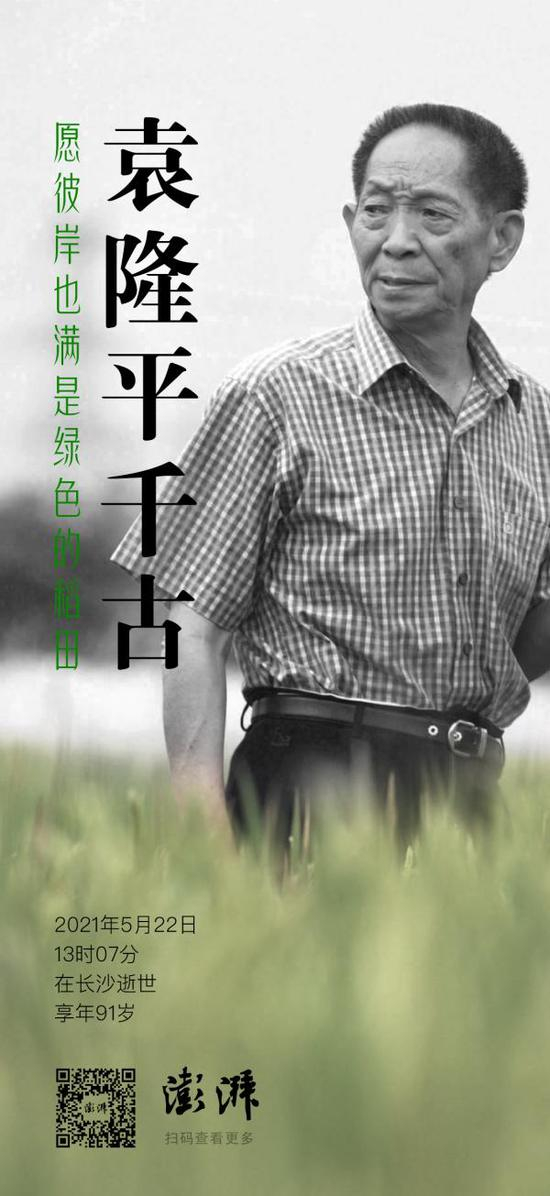 “共和国勋章”获得者、中国工程院院士、国家杂交水稻工程技术研究中心主任、湖南省政协原副主席袁隆平,因多器官功能衰竭,于2021年5月22日13时07分在长沙逝世,享年91岁。
