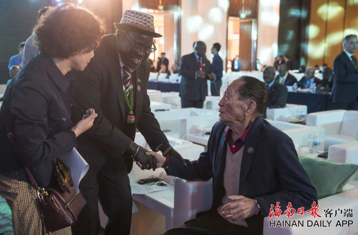 2019年12月9日,参加首届中非农业合作论坛的一位非洲代表与中国工程院院士袁隆平交流。海南日报记者 宋国强 摄