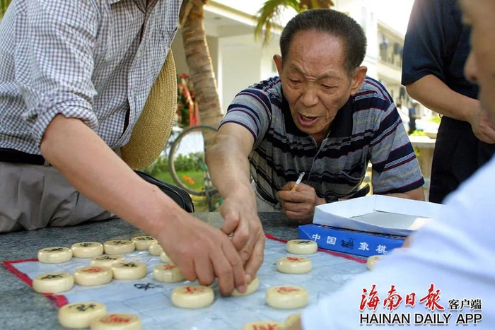 2004年3月29日下午,在海南三亚国家杂交水稻工程技术研究中心海南基地大院里,袁隆平的几个助手围在一起进行象棋大战,下楼活动的袁老凑过来观战,说是观战,着急起来却要动手挪棋子帮忙,还用浓重的湖南话与“对手”争辩,不时与大伙一起哈哈大笑。海南日报记者 张杰 摄