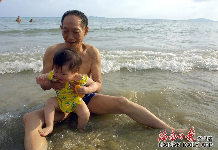 2004年3月31日,袁隆平在三亚湾与孙女享受天伦之乐。海南日报记者 张杰 摄