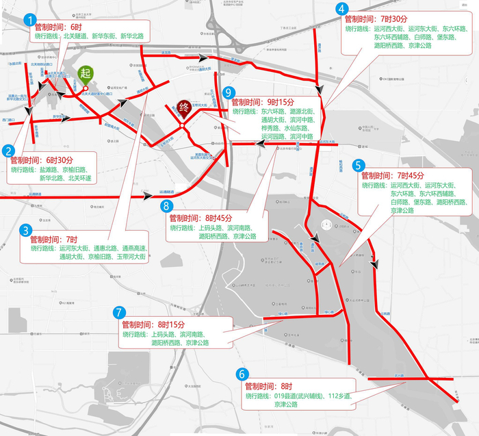 (四)周日通州马拉松部分道路将采取临时交通管理措施