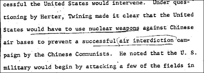 此外,美军当时甚至还考虑过,在局势进一步升级的情况下对中国大陆发动更深入、更大规模的核打击。