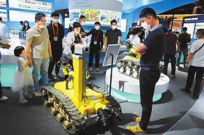 中铁装备集团在中博会上展出的世界最大直径硬岩掘进机模型。(马子占 摄)