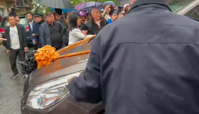 昨天的长沙下着小雨,无数的市民聚集在道路两旁,随着车队前行,前来为袁爷爷送别。