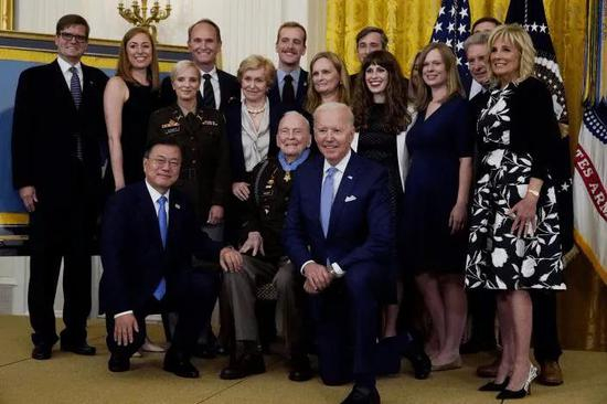 韩媒评论称:这是美国历史上首次有外国领导人受邀参加最高军事荣誉勋章授勋仪式。