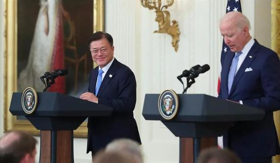 韩国总统嘴里的“总统”,是美国总统。继日本首相菅义伟之后,韩国总统成了拜登任总统后第二个接待的外国领导人,也可以说是拜登在白宫见的第二个“小弟”。