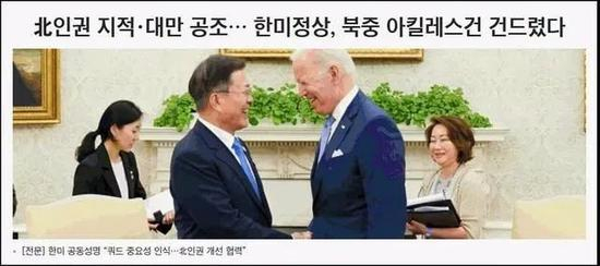《朝鲜日报》分析称,虽然美国等国多次要求,但文在寅政府此前对台海、南海两个问题一直避而不谈。本次在美方强烈要求下,这两个问题才都写进联合声明。《朝鲜日报》甚至分析认为,文在寅在白宫与拜登闭门会谈的时间比预计的长,可能就是与美方激烈争辩是否将涉台海问题写进声明。