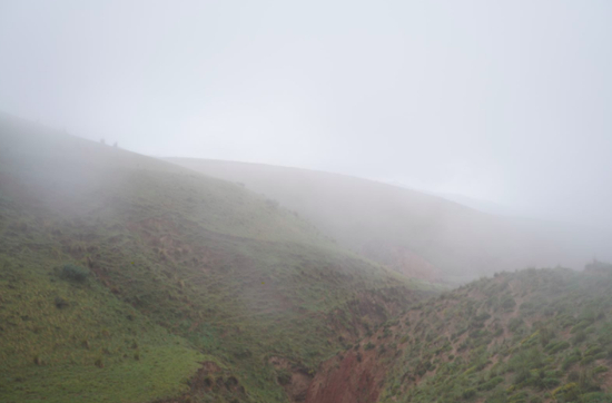 5月22日中午11:00,郭剑和拍摄团队从第二个打卡点出发前往第四个打卡点,因为第三个打卡点不通车,甚至摩托车也上不去,摄影团队器材多,就开车绕远去第四个打卡点。黄河石林越野赛的赛道,最难的部分就在这一段,从第二打卡点到第三打卡点,山是石头与砂土混合的路况,很多段都非常陡,长度有8公里,需要连续爬升1000米。郭剑注意到站点只有两个志愿者负责打卡,没有设置补给物品,也没有帐篷、医护人员。这意味着一旦发生意外,选手们可能得不到任何帮助。此时,风力已经加大到七八级,雨更密了。海拔每升高1000米,温度就会下降6摄氏度。此时,郭剑随身携带的抓绒衣抓绒裤,羊毛长袖,还有冲锋衣、冲锋裤都穿上了,“才没觉得太冷”。
