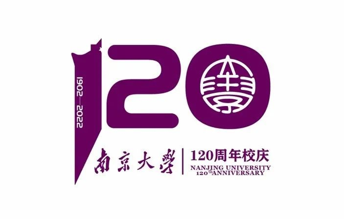 标识整体形如草书笔法勾画的数字“120”,勾连飘逸,与“南京大学”英文、“1902-2022”数字相映构成南大标志性建筑北大楼之形。右侧如一音符,寓意百廿名校奏响历史雄音、谱写未来新曲。“1”字与右侧卷曲跃动奔流之形结合,彰显“一流”之形意。标识似紫色祥云,取“紫气东来”之吉;形似一足,寓南大在新时代迈出新步伐。