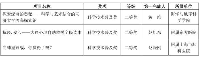 此外,同济大学合作完成的12项成果获奖,其中特等奖1项、一等奖2项、二等奖9项。