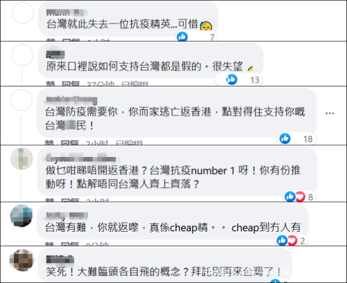 更有人抵制他回港,怕他成“毒源”,把台湾的新冠病毒带回香港。