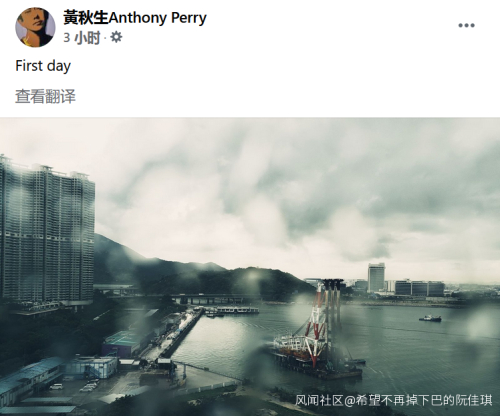 然而这才过了10天,口口声声说要和台湾一起抗疫的黄秋生,今天突然在脸书上晒出一张香港窗景照,并写下“第一天”的文案。