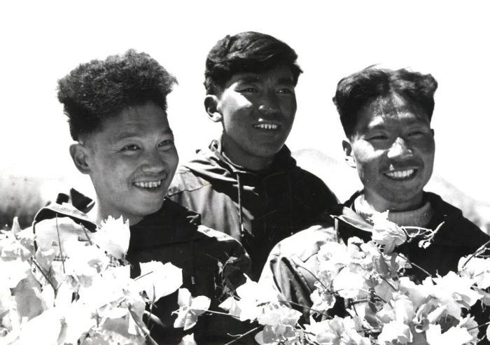 登山三英雄,左为屈银华,中为贡布,右为王富洲