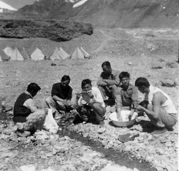 1958年8月,中苏联合攀登列宁峰在大本营休息