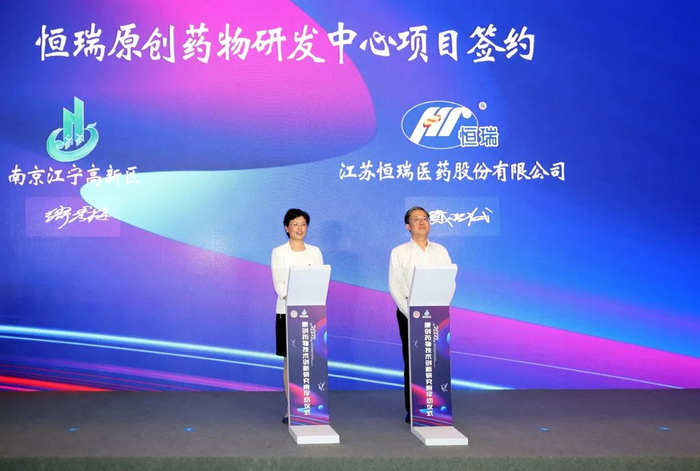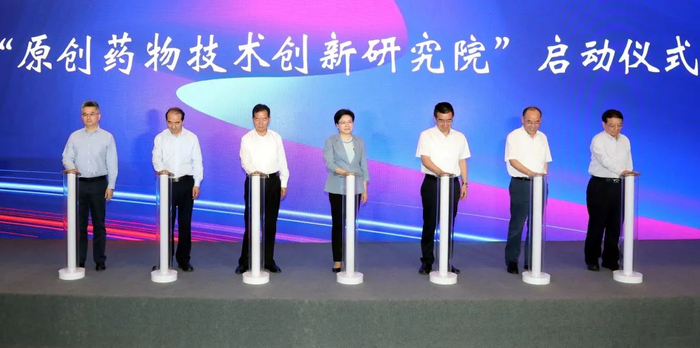 启动仪式上还举行了原创药物技术创新研究院入驻项目签约,以及南京江宁高新区管委会与江苏恒瑞医药股份有限公司战略合作签约仪式。随后,江苏省委常委、南京市委书记韩立明,中国药科大学党委书记金能明,德国科学院院士、中国药科大学校长来茂德,中国工程院院士、江宁药谷专家委员会主任委员王广基,南京市委常委、市人大常委会副主任、江宁区委书记李世贵,南京市委常委、秘书长蒋跃建,南京市副市长沈剑荣等领导上台共同按下启动键,标志着原创药物技术创新研究院正式启动。