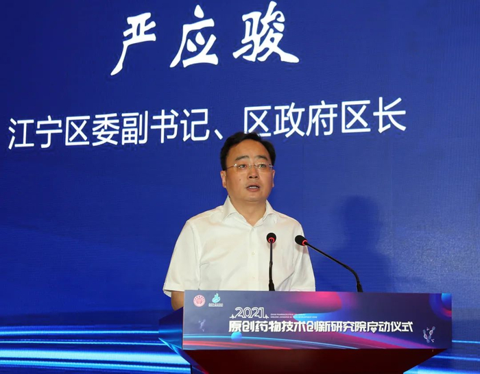 这是我校进一步深化政产学研协同创新深度融合、加快推进“双一流”建设、全面服务地方经济社会发展和“健康中国”战略的又一创新举措。江苏省委常委、南京市委书记韩立明,中国药科大学党委书记金能明,德国科学院院士、中国药科大学校长来茂德,中国工程院院士、江宁药谷专家委员会主任委员王广基,南京市委常委、市人大常委会副主任、江宁区委书记李世贵,南京市委常委、秘书长蒋跃建,南京市副市长沈剑荣,中国药科大学副校长孔令义,中国药科大学副校长、原创药物技术创新研究院院长郝海平等出席仪式。江宁药谷专家委员会有关专家、中国药科大学重点合作企业代表、中国药科大学校友会杰出校友代表、原创药物技术创新研究院拟合作企业代表、原创药物技术创新研究院拟引进高层次人才代表等参加仪式。仪式由江宁区委副书记、区长严应骏主持。