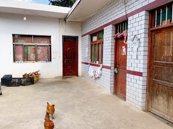毕节多山,华子的家在一个半山坡,坡面横切出一个平台,盖了4间平房。华子和弟弟住一间,大姐和妹妹住一间,父亲睡另一间,最外侧是厨房。院子没有外墙,前面是个半坡,走下去便是村里的干道。