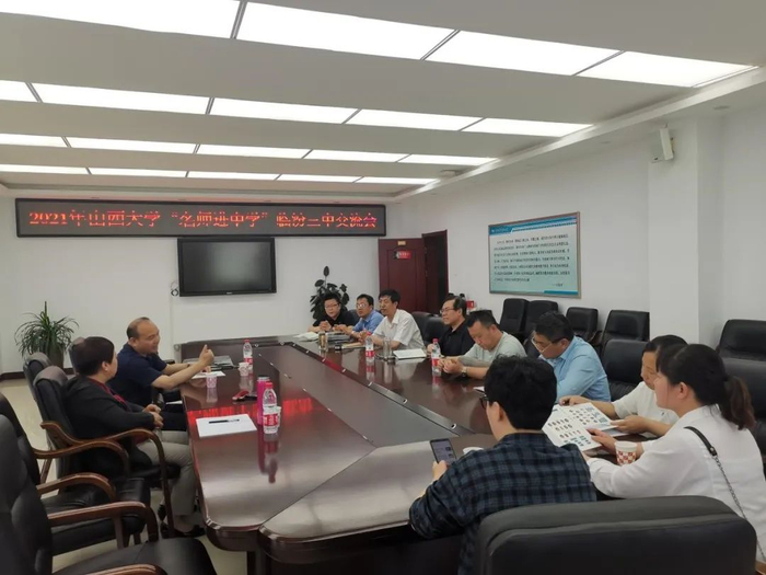 5月12日晚,宣传组一行来到山西师大实验中学,与校领导、班主任老师及在该校任教的山大校友进行了座谈交流,宣传组就山大发展进行了介绍。双方就落实优质生源基地建设的具体举措进行了交流,希望优秀学子能更多了解山大,选择山大。