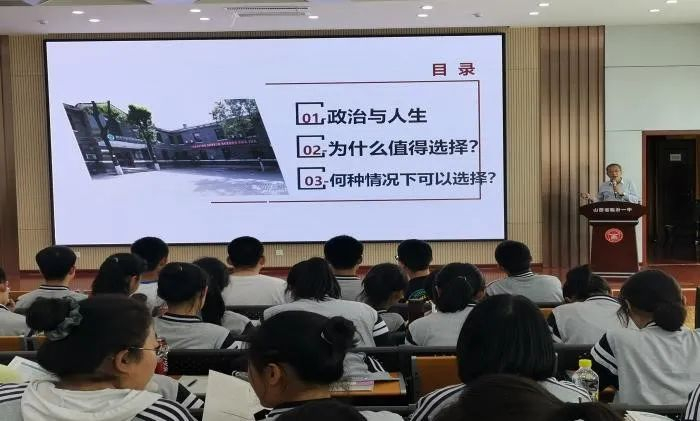 座谈会后,山西大学政治与公共管理学院王毅教授为同学们作了题为“掌握聪颖的政治智慧,谱写人生的华彩乐章”的精彩科普讲座,对“政治与人生:为何选择政治学富有意义?”“为什么山西大学值得选择?”“何种情况下可以选择?”三个设问作了详细解答。讲座内容详实,讲解风趣。赢得了在场师生一次次热烈掌声。