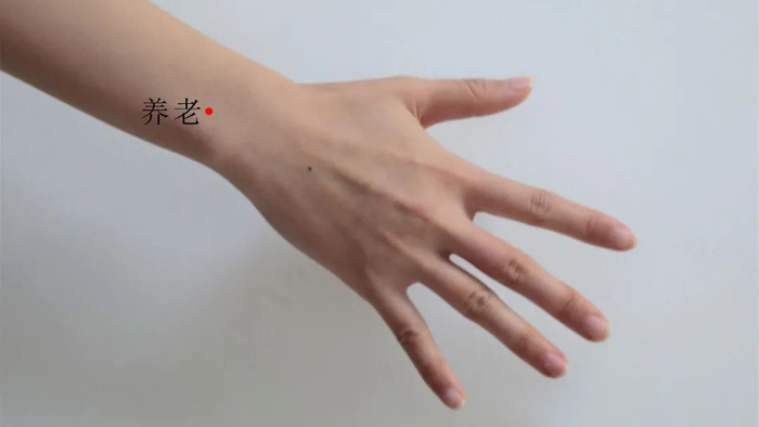 本穴最早见于《针灸甲乙经》:养老,手太阳郄,在手踝骨上一空,腕后一寸陷者中。
