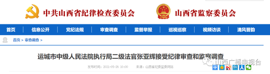 运城市中级人民法院执行局二级法官张亚辉涉嫌严重违纪违法,目前正接受省纪委监委纪律审查和监察调查。
