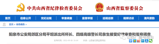 阳泉市公安局郊区分局平坦派出所所长、四级高级警长司泉生涉嫌严重违纪违法,经阳泉市纪委监委指定,目前正接受阳泉市矿区纪委监委纪律审查和监察调查。