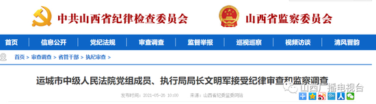 运城市中级人民法院党组成员、执行局局长文明军涉嫌严重违纪违法,目前正接受省纪委监委纪律审查和监察调查。