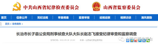长治市长子县公安局刑事侦查大队大队长赵志飞涉嫌严重违纪违法,目前正接受长子县纪委监委纪律审查和监察调查。