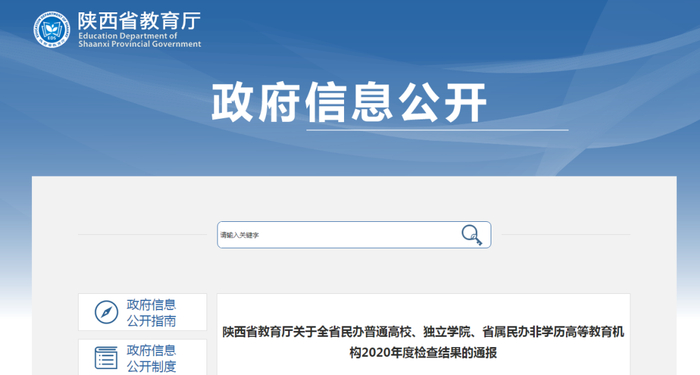 陕西省教育厅日前发布关于全省民办普通高校、独立学院、省属民办非学历高等教育机构2020年度检查结果的通报。