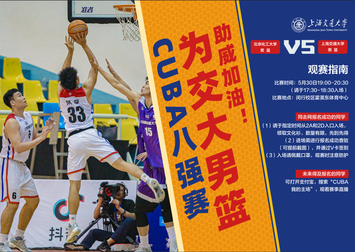 就在今晚,霍体见!CUBA八强赛,为交大男篮助威加油!