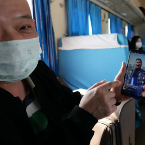 ▲从菏泽到曹县只需一张四块钱的火车票,5039次火车上,曹县朱洪庙乡的付先生在看本地网红大硕哥的视频,这次曹县出圈走红也源自该网红的一句网络直播口头禅“山东菏泽曹县666,我的宝贝。”
