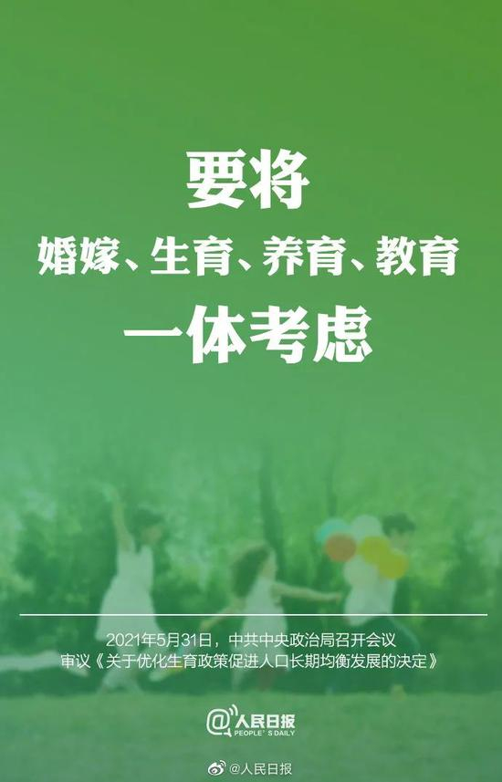 中央这个决策是要促进人口的长期均衡发展,不光关注人口规模,还包括人口素质要提升,人口的年龄结构要优化,所以它其实是一个一个非常一个综合的过程。要从根本上来解决这个问题,需要从婚嫁、生育、养育、教育一体考虑,包括观念上也要改变。