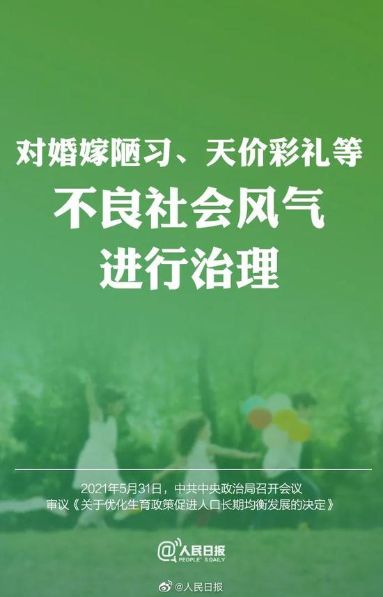 这次也有一些相应的配套政策的出台,要将婚嫁、生育、养育、教育一体考虑加强适婚青年婚恋观、家庭观、教育引导,对婚嫁陋习、天价彩礼等不良社会风气进行治理。