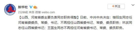 原标题:山西、河南省委主要负责同志职务调整