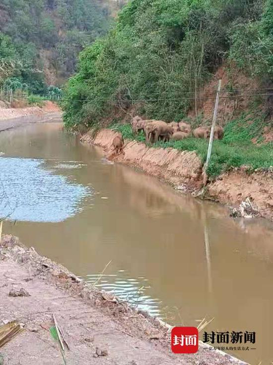 下午现场会时,几头大象已经在下游河谷出现,距离封堵的路段两公里远,工作人员在微信群里报告大象下河的消息。大家一阵紧张,都以为大象会沿河北上,不知为何,大象在河里晃悠一会儿,又原地上岸。难道有人走露消息:人类已在前方封路!