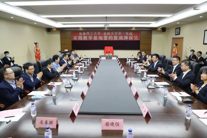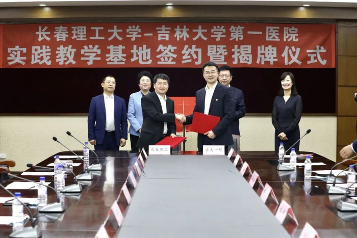 6月3日,长春理工大学与吉林大学第一医院(以下简称“吉大一院”)实践教学基地签约暨揭牌仪式在吉大一院举行。这是继2018年双方签署合作框架协议后的进一步深化合作。