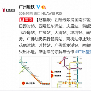 据@广州地铁 微博消息,接上级通知,6月5日即时起,四号线东涌站、庆盛站、黄阁汽车城站、黄阁站、蕉门站、金洲站、飞沙角站、广隆站、大涌站、塘坑站、南横站、南沙客运港站停止对外运营服务。广佛线仍实行鹤洞站、菊树站停止对外运营服务;一号线西塱站、坑口站,花地湾站、芳村站,广佛线龙溪站、西塱站、沙涌站,五号线滘口站所有出入口只出不进。