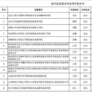 教育部拟同意设置的本科高校名单。来源:教育部官网