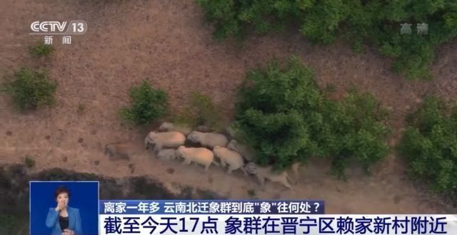 截至今天17点 象群在晋宁区赖家新村附近
